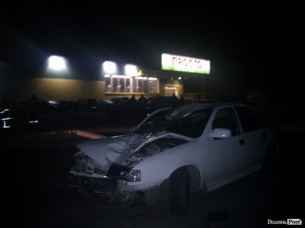 Зокрма, повідомляється, що автомобіль Opel білого кольору врізався у стовп на вулиці Ветеранів, біля супермаркету «Просто маркет». Стовп розламався на дві частини і впав на машину».