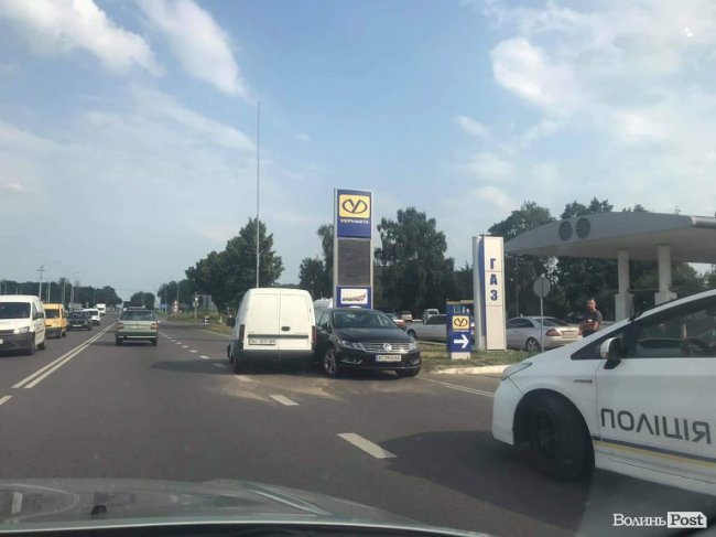 Поблизу АЗС не розминулися Volkswagen Passat i Opel Combo. В результаті ДТП автівки зазнали механічних ушкоджень.
