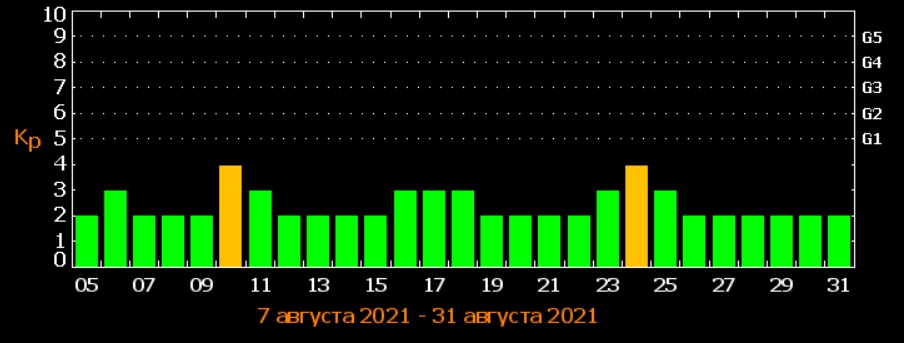 За іншими даними, 16-20 серпня прогнозують сильну магнітну бурю, а 29 серпня очікується магнітна буря середньої сили.