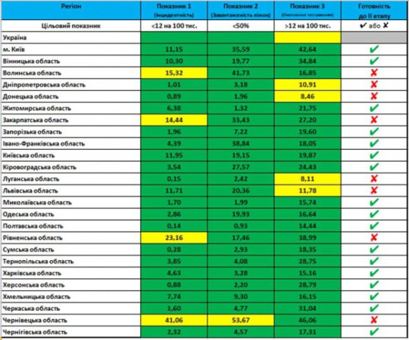 Не готовими є Волинська, Дніпропетровська, Донецька, Закарпатська, Луганська, Львівська, Рівненська та Чернівецька області, свідчить статистика Міністерства охорони здоров'я.