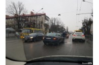 По вулиці Богдана Хмельницького трапилася аварія, внаслідок якої паралізовано рух транспорту