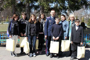 Вручили подарунки (а замовили діти спортивні костюми і кросівки) начальник управління кадрового забезпечення УМВС України у Волинській області полковник міліції Микола Фень, начальник сектору соціально-гуманітарної роботи УКЗ УМВС України у Волинській області капітан міліції Юрій Сабарін та інспектор сектору СГР УКЗ УМВС України у Волинській області лейтенант міліції Анна Бобровська.