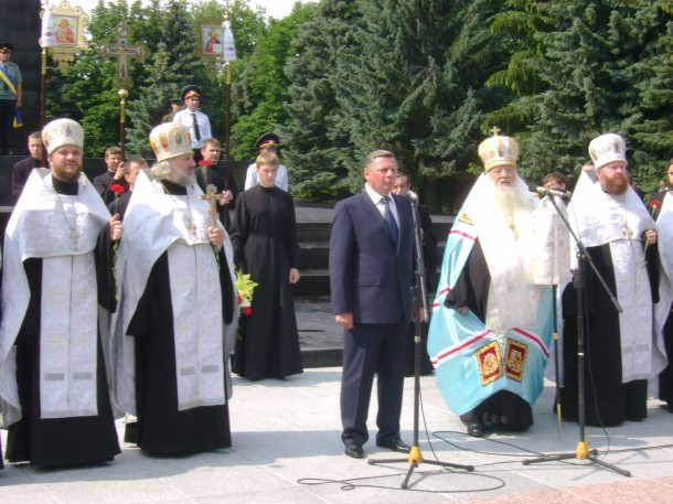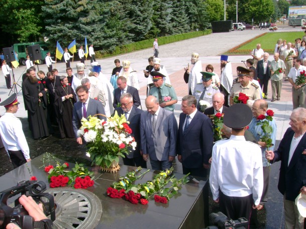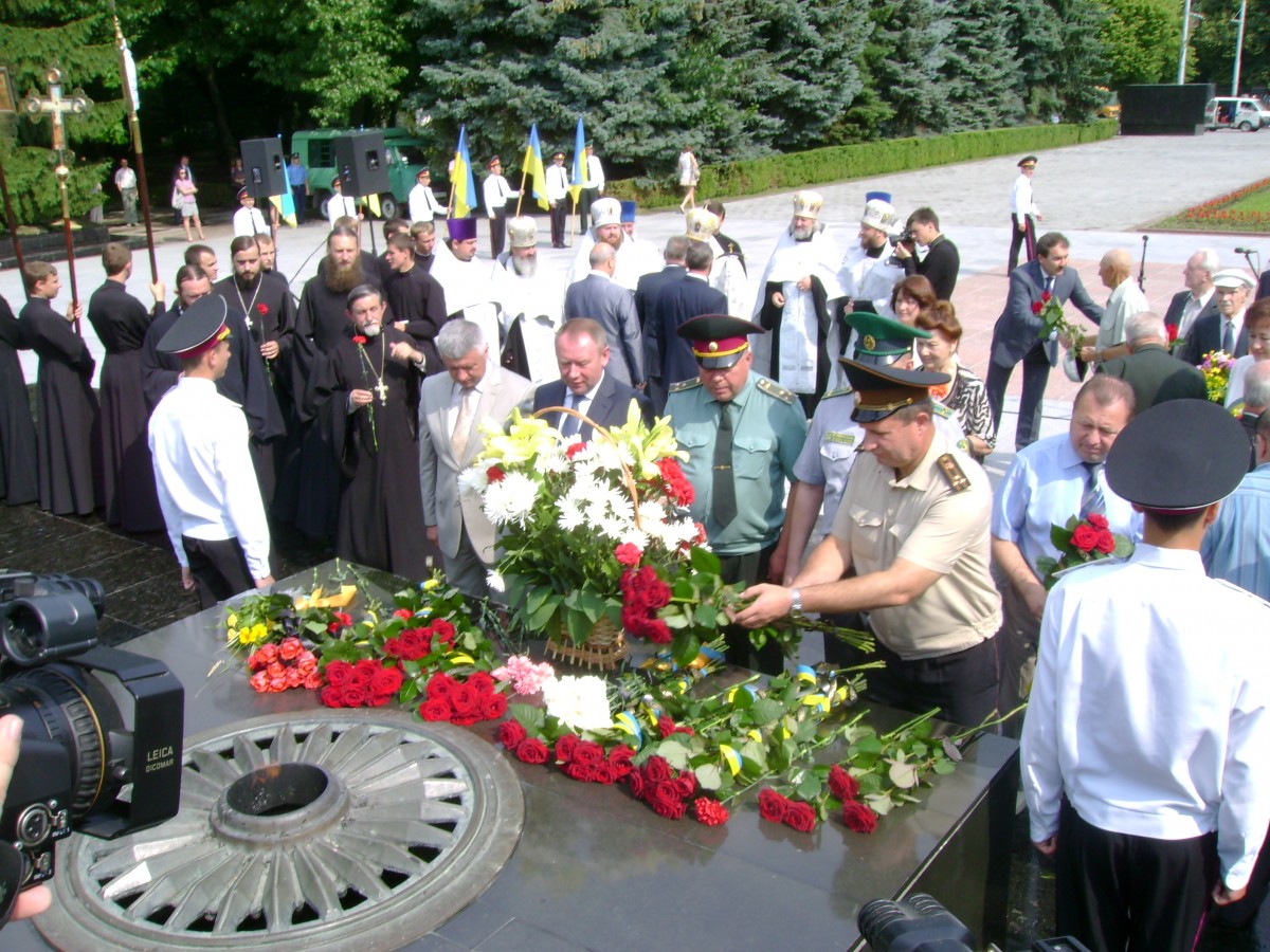 Пам’ять всіх, хто загинув під час Другої світової війни вшанували хвилиною мовчання, та відслужили панахиду. Після чого, всі бажаючі мали можливість покласти квіти до вічного вогню.