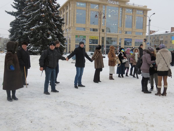 Цьогоріч, попри насичений робочий день, відзначити День Соборності на Театральну площу прийшло більше сотні осіб. Ініціювали захід місцеві громадські організації та активісти. Разом з тим, до "живого ланцюга" почали приєднуватись і перехожі. Тож коли ланцюг було сформовано - у ньому можна було побачити не лише молодь, а й людей похилого віку, чиновників, політиків та бізнесменів. Варто зауважити, що до пересічних лучан у цей день приєднався і Микола Томенко, який завітав до обласного центру саме у День Соборності.