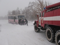 У смт Дубище Рожищенського району у сніговій пастці опинився рейсовий автобус, у якому знаходилось 10 пасажирів. Рятувальники відбуксирували пасажирський автобус на безпечну ділянку автотраси, після чого він продовжив рух.