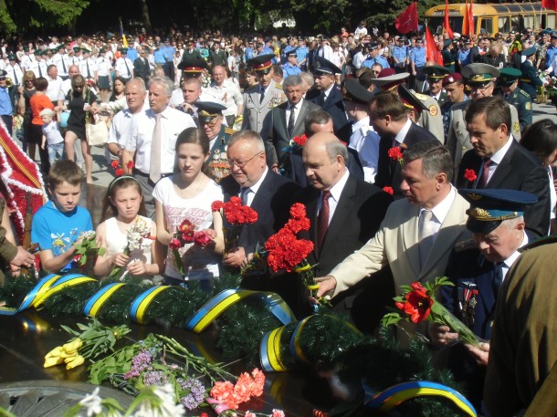 У свою чергу, до привітань з Днем Перемоги приєднався голова облдержадміністрації Борис Клімчук. Він зазначив: «Сьогодні ми повинні, зобов’язані висловити слова шани і вдячності тим, хто виборював для нас такий чудовий сьогоднішній травень. Я від всієї душі вітаю всіх нас з Днем Перемоги у Великій Вітчизняній війні».