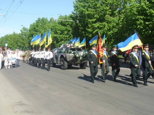 Відтак, урочиста хода розпочалася на Театральному майдані міста. Її учасниками були ветерани Великої Вітчизняної війни, учні військового ліцею, духовий оркестр, представники духовенства та посадові особи області. Супроводжували присутніх військовою технікою.