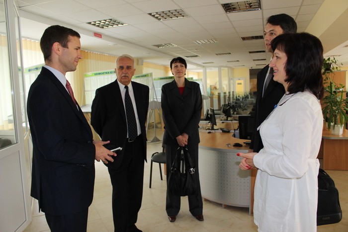 Також ІІ секретарю Посольства США в Україні Грегорі Пфлегеру продемонстрували, яким чином відбувається прийом. До слова, відвідувачу, аби звернутись до адміністратора, необхідно отримати талон, номер якого оголошується у мікрофон та висвітлюється на екрані.