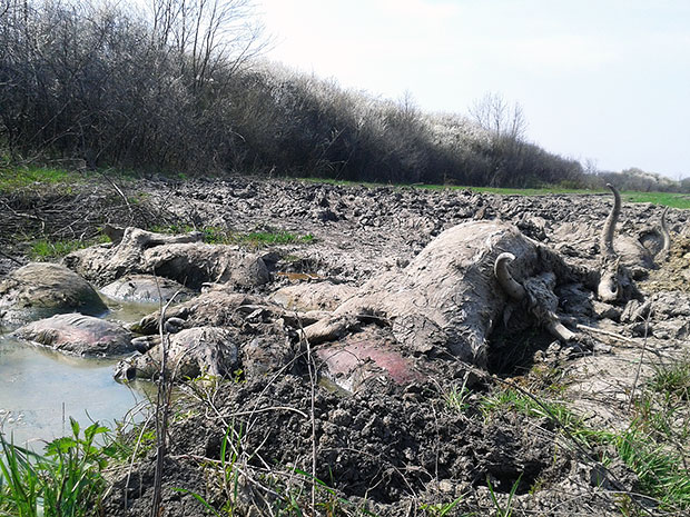 «У неділю мав нагоду пройтися вздовж річки за кладовищем і був шокований побаченим! Куди дивляться екологи й санстанція?! Падіж зі свинокомплексу прикопують прямо на березі Луги!!!»