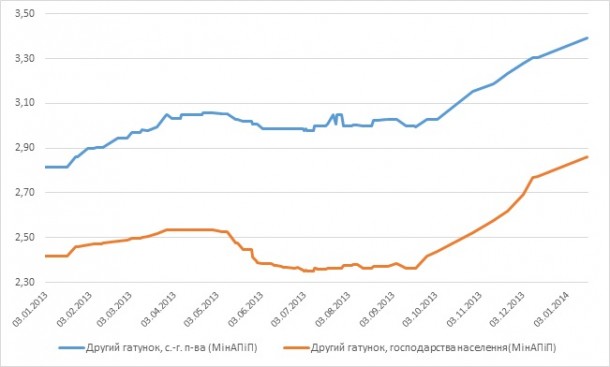 За даними Міністерства аграрної політики та продовольства, ціни на молоко ІІ-го ґатунку від сільськогосподарських підприємств, станом на 17-те січня зросли на 0,7% — 3 392 грн/т. Закупівельні ціни на молоко ІІ-го ґатунку від господарств населення зросли на 0,6% та склали 2 859 грн/т.