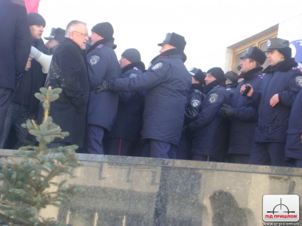 Люди утворили коридор по якому пройшов губернатор у супроводі Гузя. Гузь огоосив людям, що у стінах ОДА перебувають бійці "Альфи".
