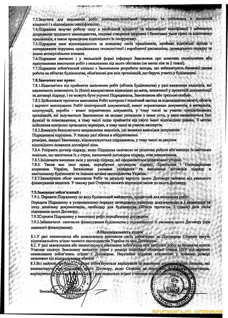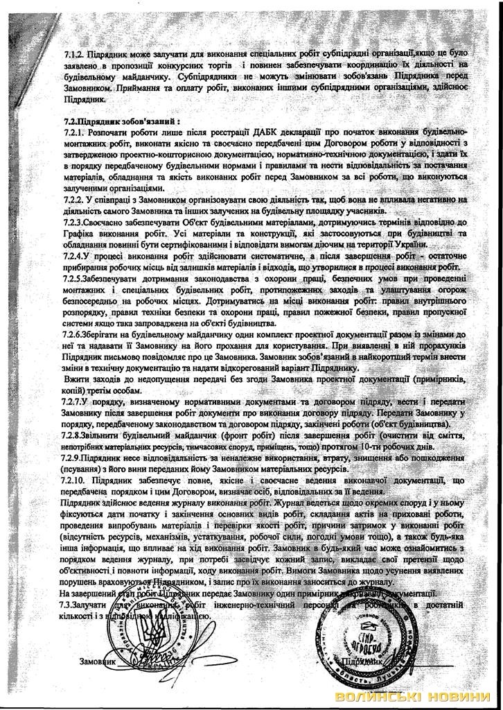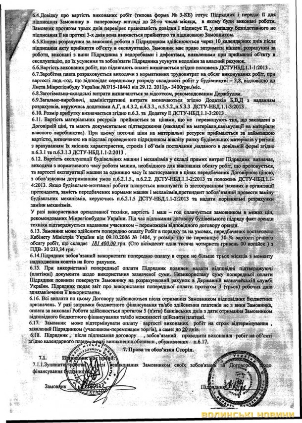 Згідно із договором, якщо фактична вартість закінчених робіт перевищуватиме договірну ціну, то витрати оплачує підрядник і з міського бюджету додаткових коштів не виділятимуть – пункт 4.3 договору. Також у документі зазначено, що порушення строків виконання робіт можливе, якщо будуть затримки фінансування витрат. У пункті 7.2.4 прописано, що підприємство «Стир-Агробуд» зобов’язане в процесі, зокрема й після завершення робіт, здійснити прибирання робочих місць від залишків матеріалів і відходів, що утворилися в процесі виконання робіт. Якщо замовник виявляє недоліки в роботі, то він має право вимагати безоплатного виправлення.