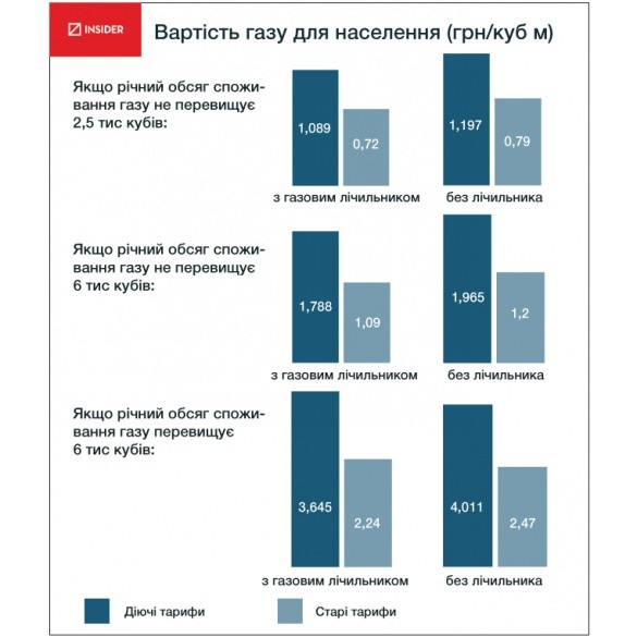 Тепер переглянути "комуналку" все ж довелося. Збільшення комунальних тарифів по всій Україні – одна з основних вимог Міжнародного валютного фонду для відновлення кредитування України. Окрім того, Росія спочатку підвищила для України ціну газу на 100 доларів, а потім і зовсім призупинила постачання. ГАЗ У травні в Україні майже на 60% зросли тарифи на газ для потреб населення. До цього вартість газу не змінювалася від серпня 2010 року. Мінімальний тариф становив 720 грн за тисячу кубометрів.