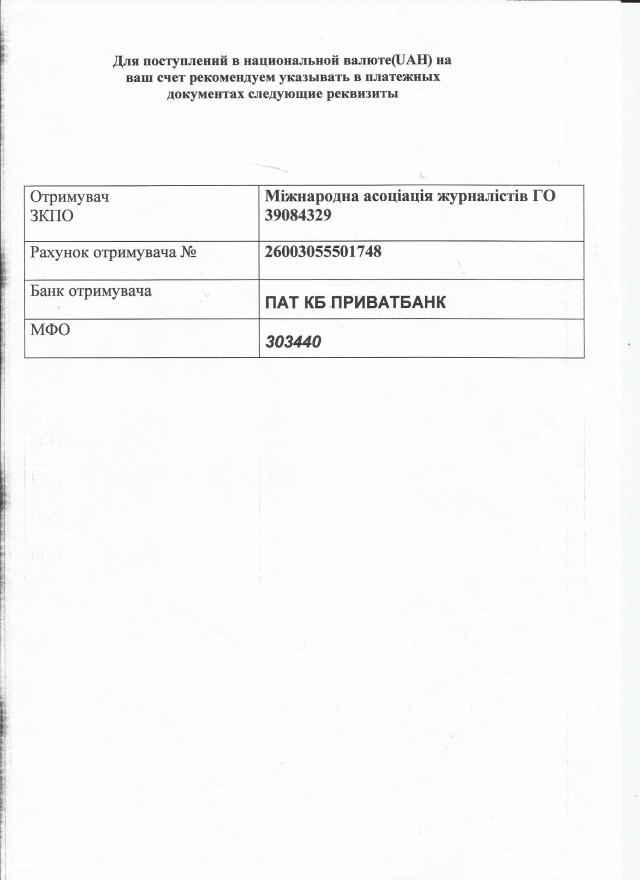 Всіх не байдужих просимо перераховувати кошти за вказаними реквізитами: