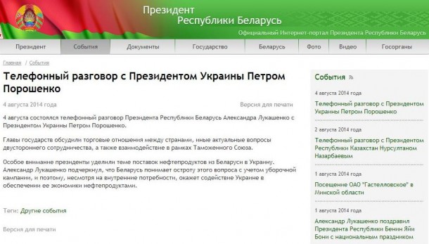 За даними прес-служби, під час розмови особливу увагу президенти приділили темі поставок нафтопродуктів з Білорусі в Україну.