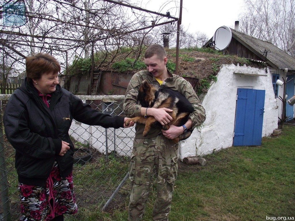 Сергію – 21 рік, відслужив армію у «Десні»,а через півроку після повернення у квітні був мобілізований на у зону АТО. Ним опікуються волонтери міста Любомль, яким і розповів хлопець про свою ще дитячу мрію – мати чотирилапого друга. Тож за їх клопотанням до Сергія додому завітали працівники Волинської митниці, які вручили 3-ох місячну німецьку вівчарку та новенький велосипед, адже бійцеві після поранення у ногу нині важко ходити.