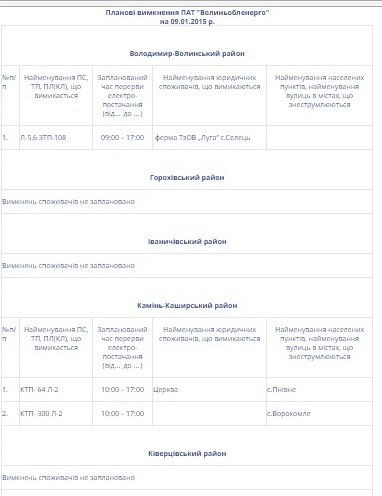 ПАТ «Волиньобленерго» інформує мешканців Волині про графік відключення світла на п’ятницю, 9 січня.