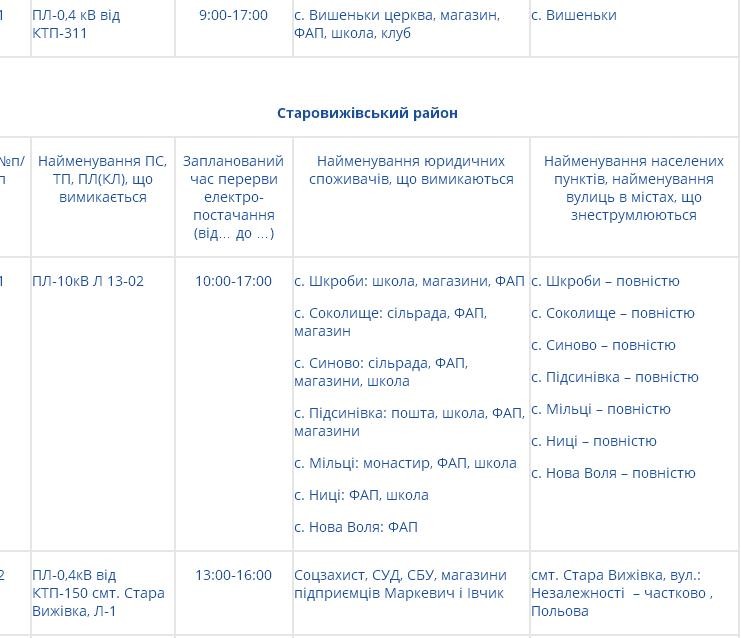 ПАТ «Волиньобленерго» повідомляє мешканців Волині про планові відключення споживачів від електроенергії у населених пунктах області на четвер, 19 лютого.
