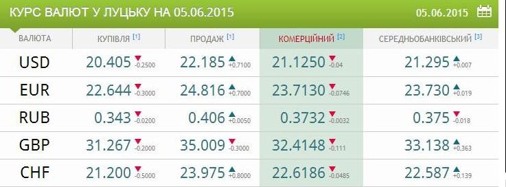 Сьогодні, 5 червня, курс валют у Луцьку становить: