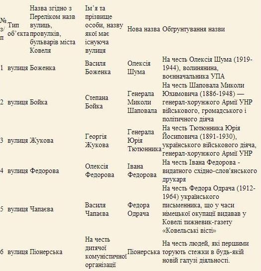 Враховуючи результати громадського обговорення та рекомендації топонімічної комісії, міський голова Олег Кіндер видав розпорядження «Про перейменування вулиць у м.Ковелі».