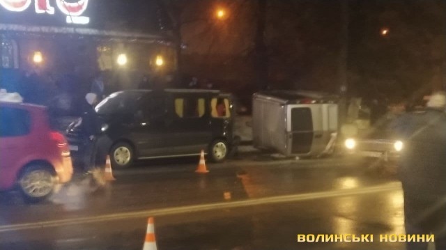 Перевернутий бус та розтрощені автівки: у Луцьку − масштабна ДТП (фото)