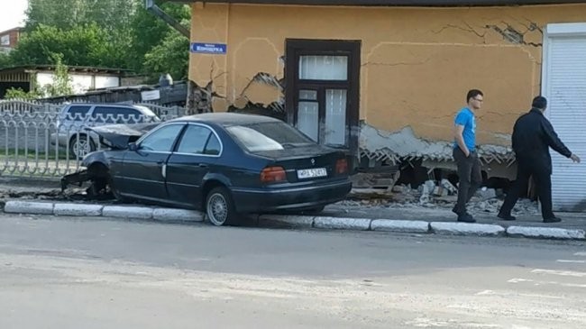 варія трапилась зранку 20 травня на вулиці Коніщука. Автомобіль "BMW" на єврореєстрації, в'їхавши у будинок, зніс значну частину стіни.