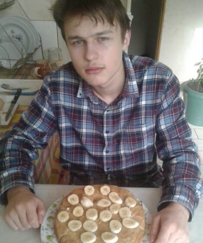 Хлопець середньої тілобудови, має зріст 170-175 см, коротке темне волосся, був одягнений у темно-синю куртку з жовтим написом "Austa", сіру шапку, темні штани, сірий светр, сорочка в клітинку, чорні черевики. При собі мав чорний рюкзак.