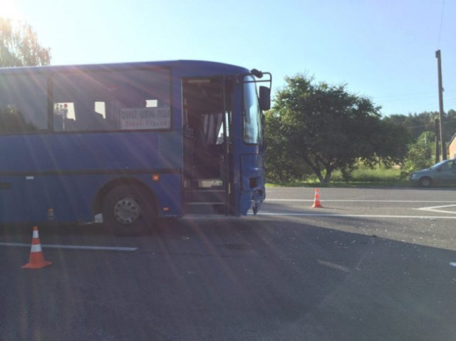 Через зіткнення автобуса та легковика останнього викинуло з траси. Зазначимо, що від удару спрацювала подушка безпеки.