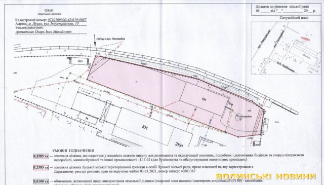 Дві земельні ділянки комунальної власності на вулиці Індустріальній, 10 у Луцьку купив мешканець села Прилуцького Іван Оларь.