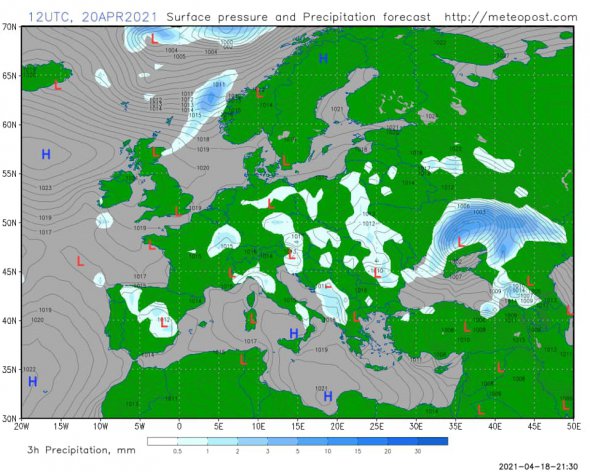 В Україну несеться циклон. 20 квітня атмосферний вихор із низьким тиском у центрі переміститься з-за Чорного моря.